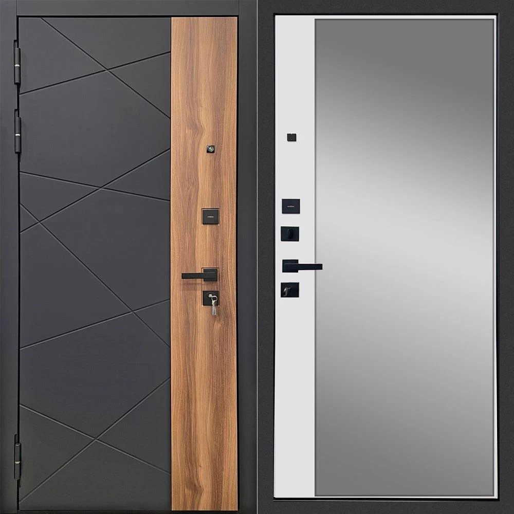 Дизайнерская входная Дверь Ратибор РАКУРС 3К ЗЕРКАЛО класса Люкс с несколькими листами стали, звукоизоляцией и теплоизоляцией. Утепленный короб и полотно защитят от сквозняков и шумов. Модель не только надежная, комфортная, защищенная и высочайшего качества, но и очень красивая! Будет отлично сочетаться с интерьером дома, квартиры или офиса. Сейчас действует выгодное предложение по цене: 51 050 руб.